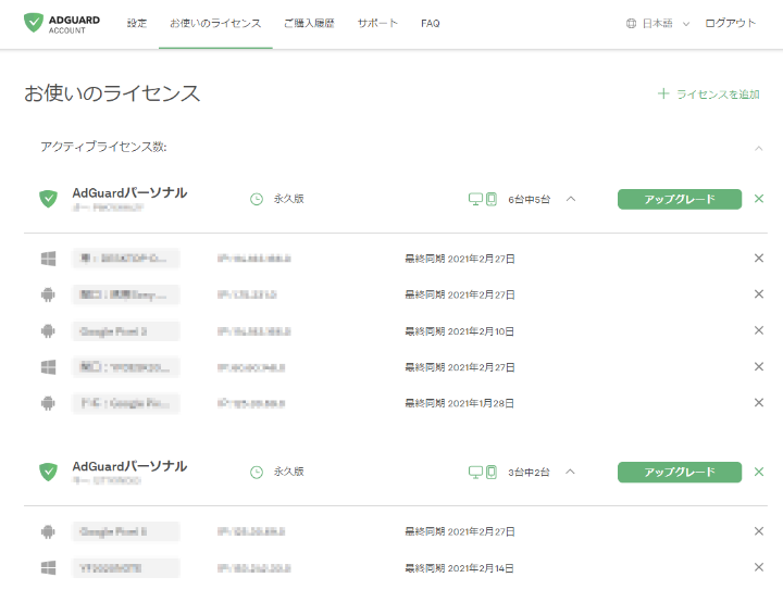 【AdGuard】便利なライセンス管理 コメントする / AdGuard / カズ 「AdGuard」のホームページで、自分のライセンスと利用端末を一元管理ができる。 私の場合、1台認証したつもりがまだできていなかったことにもすぐ気付くことができたし、パソコンを替えた際のライセンス移行もすんなりできた。 […] 【AdGuard】便利なライセンス管理 続きを読む »